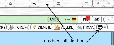 10. Juli 2019 um 09:10 #1 HalloKann man ein Lesezeichen das in der Lesezeichenleiste ist auch in die Menüleiste oben einfügen? Habe mal ein Bild angehängt die ich nicht weis ob meine Begriffe richtig sind. Danke im Voraus hwww