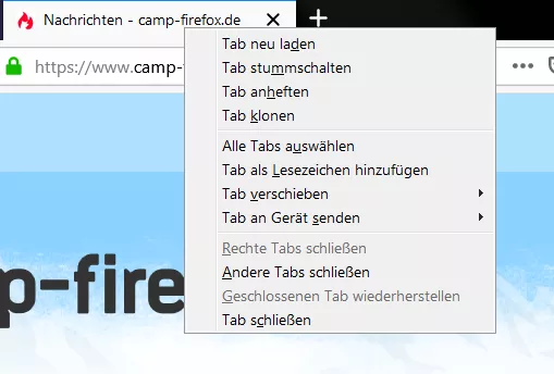 Kontextmenü für Tabs mit CSS aufgeräumt