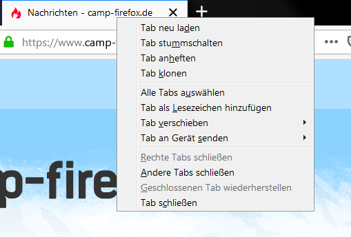 Unabhängig von JS habe ich das Kontextmenü für Tabs mit CSS aufgeräumt. Ich habe alles ausgeblendet, bis auf "Tab schließen".