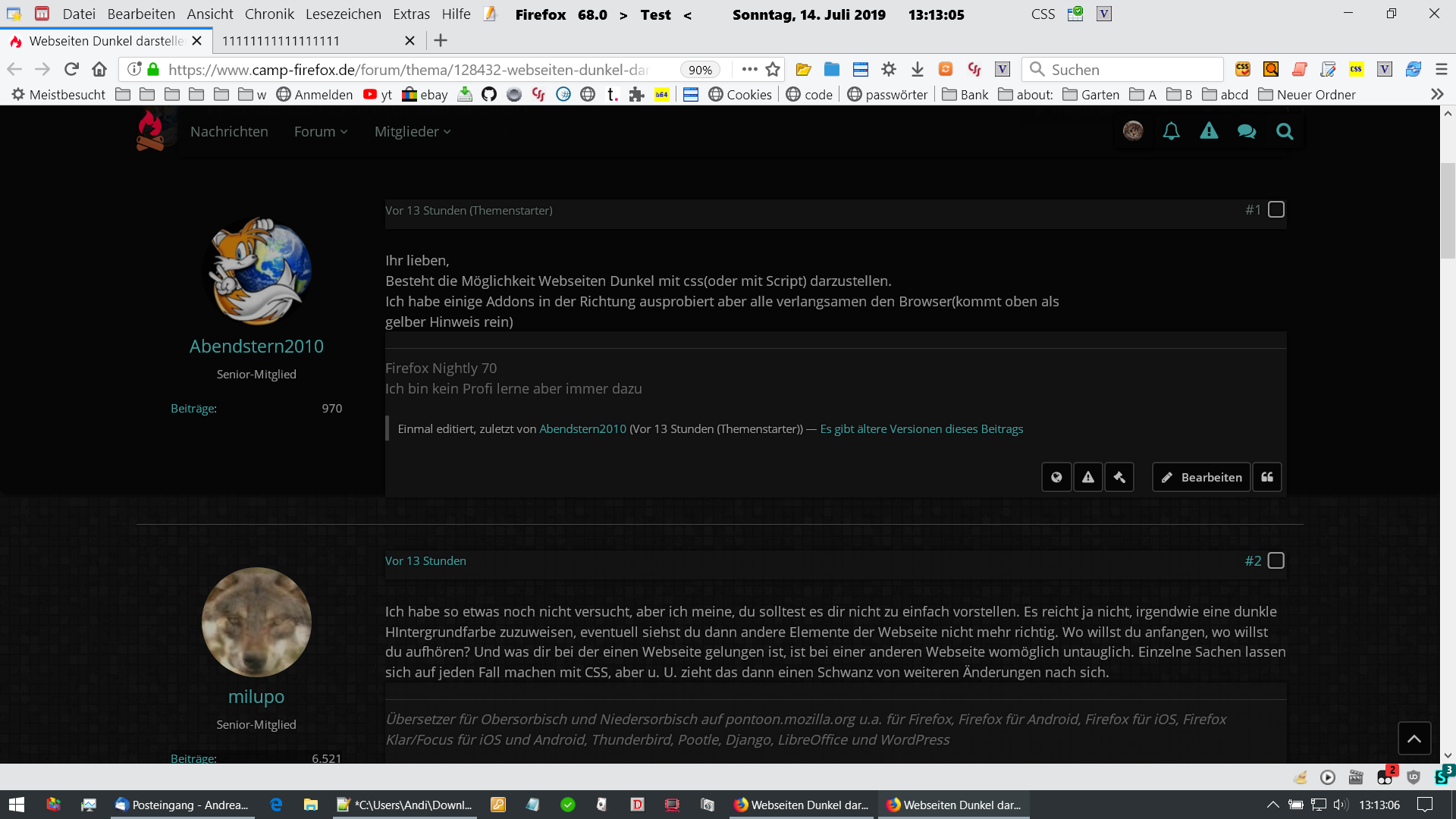 • Ich habe mir eine Seite/Forum komplett dunkel gemacht, sind ja "nur" 1600 Zeilen CSS. Um mal eine Aussicht zu geben, wo sowas enden kann. Und es hat gut ein Jahr gedauert, bis ich alle Bereiche durch hatte + Kleinkram ausbügeln. Für dieses Forum sind es auch schon wieder 700 Zeilen.