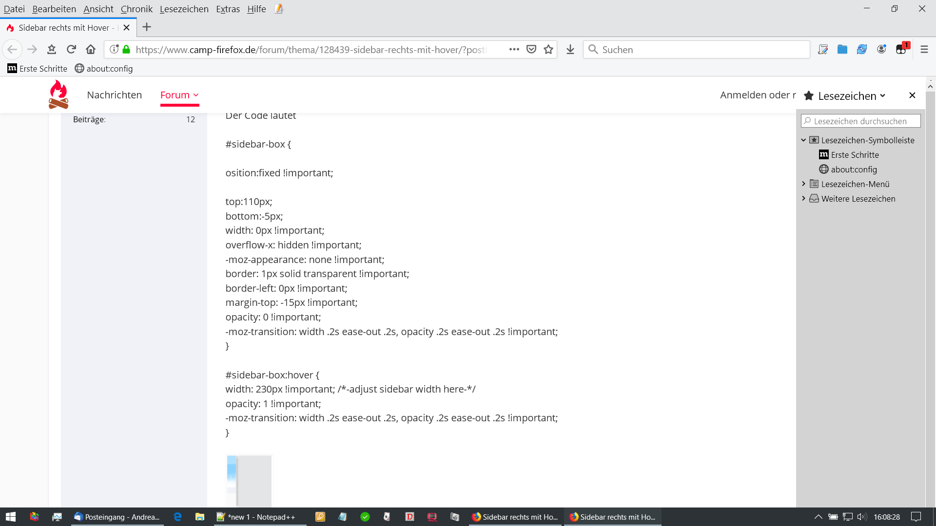 Wenn ich die Sidebar normal links habe und den CSS Code mit Hover zum ein-und ausblenden benutze funktioniert es einwandfrei.
