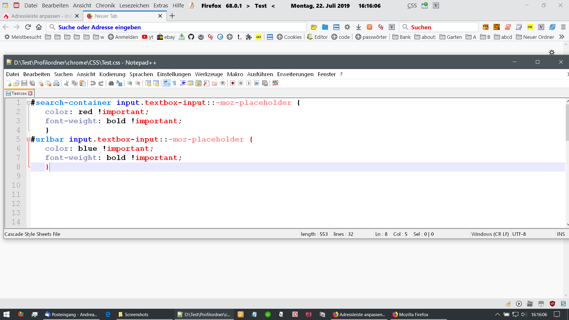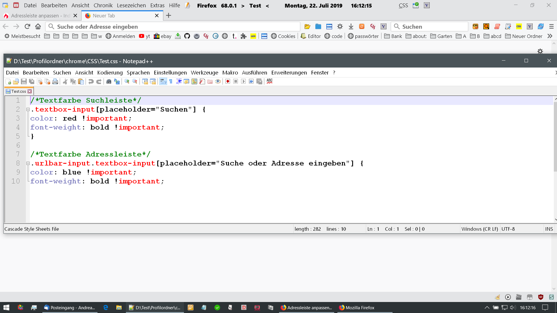 Hierzu habe ich mir den Css-Code "Adressleiste farig.css" geladen.