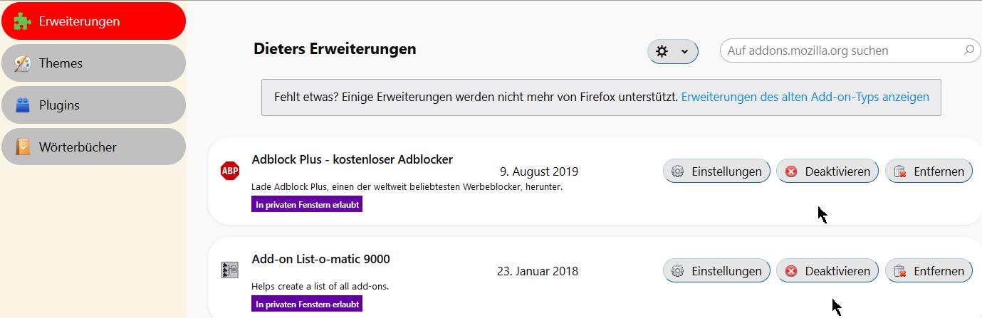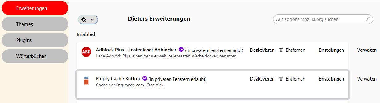 • Hast du für beide Screenshots das geiche Gerät verwendet, sprich mit gleicher Auflösung? Ich mit meiner geringen Auflösung habe kaum eine Chance die Schaltflächen in eine Reihe mit den Add-on-Namen zu bekommen. Auf einem Laptop hast du weniger Platz zur Verfügung als auf einem großen PC-Monitor.