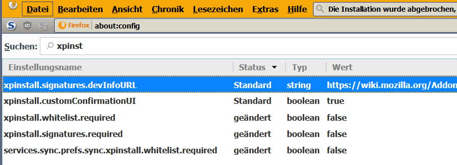 about:config Einstellungen