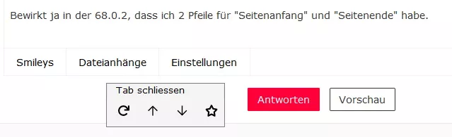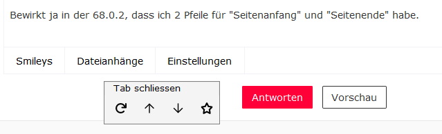 Du wirst lachen, bei mir funktioniert das Skript ScrollTopAndBottom.uc.js nicht. Eigentlich erwarte ich da zwei Grafiken (Pfeil hoch und Pfeil herunter) zu sehen. Oder mache ich etwas falsch?