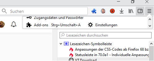 Ich habe nur noch ein Problem: mit der Erweiterung für FF Neustart im Hamburger Menü ist dieses ausgeklappt nur eine Zeile hoch. (Siehe Bild)