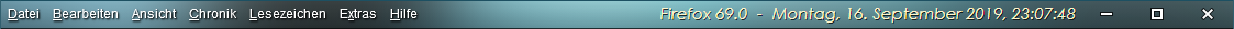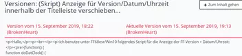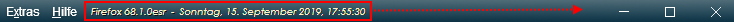 ich benutze unter FF68esr/Win10 folgendes Script für die Anzeige der FF-Version + Datum/Uhrzeit:
