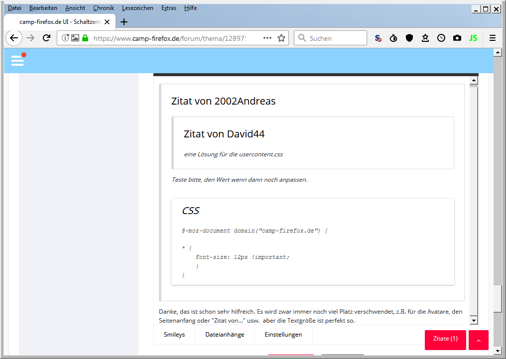 Also es wäre schön, wenn man wieder eine JS-freie Nutzung ermöglichen könnte. Für die Schriftgröße gibt es doch sicherlich einen Workaround mit der usercontent.css. Habt ihr da etwas geeignetes?