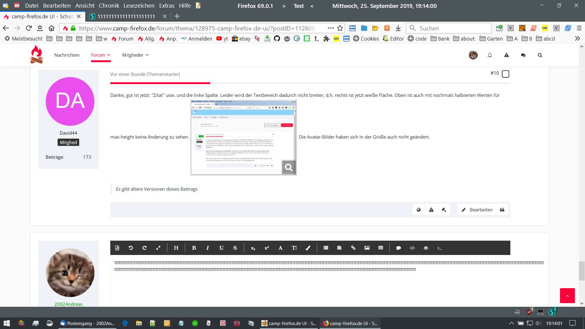 Ebenso die Voreinstellung der Schriftgröße, mit der kaum noch was auf den Bildschirm paßt. Die dauerhafte Speicherung einer Skalierung ist da nur ein mäßig guter Workaround, der zudem nicht mit dem Torbrowser funktioniert, den ich privat vorzugsweise benutze.