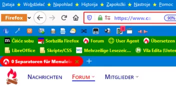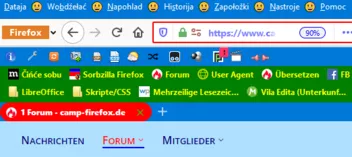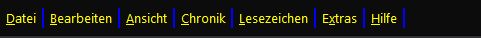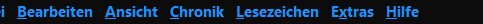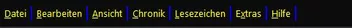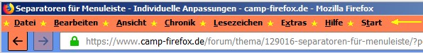 CSS#file-menu::after, #edit-menu::after, #view-menu::after, #history-menu::after, #bookmarksMenu::after, #tools-menu::after { display: block !important; content: '\2605' !important; font-size: 14px !important; color: yellow !important; }Bei meinem Code ist das Sternchen keine Grafik, sondern ein Unicode-Schriftzeichen mit dem Zeichencode u+2605. Schriftgröße ist 14px und Schriftfarbe Gelb, weil meine Menüleisten-Hintergrundfarbe Blau ist, da ist Gelb gut sichtbar. Hier mein Bildschirmfoto: