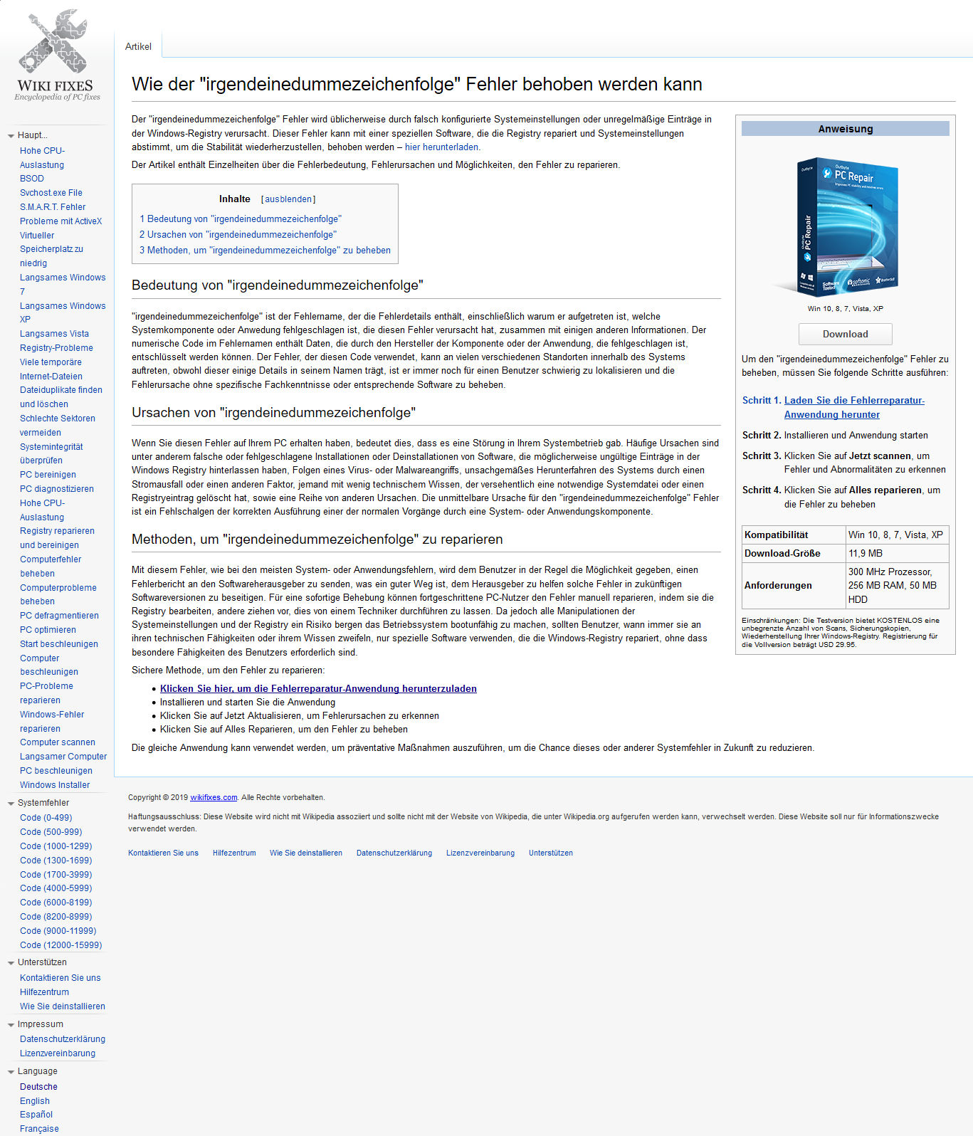 Nun immerhin steht dort etwas eindeutig drin.... Das System hat einen Schaden...