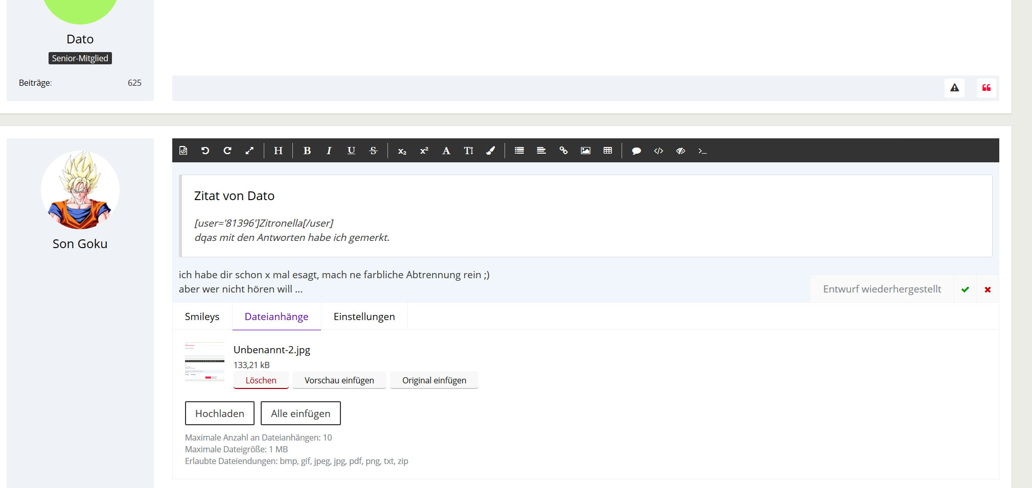 gern geschehen, bitte schreibe aber deine Antworten nicht mit in die Zitate rein ![]()