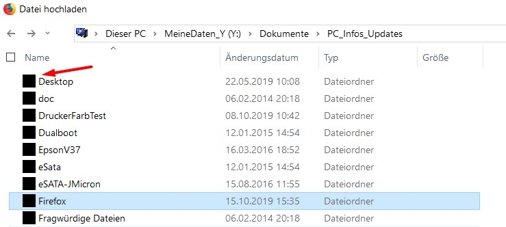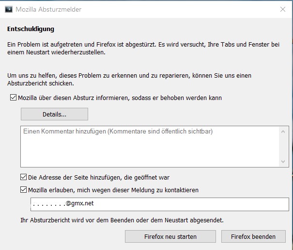 Es gab noch mehr, aber die habe ich nicht alle gesendet. Was ich aber festgestellt habe ist der Umstand, dass der FF kurz vor den Abstürzen immer "träger" reagiert. Außerdem werden, wenn ich etwas im FF laden oder speichern möchte, die Explorerinhalte nicht richtig dargestellt. Einige Einstellmöglichkeiten des Explorers fehlen, z.B. die Symbolgröße kann nicht angepasst werden. Die Symbolebilder der Dateien gibt es gar nicht oder nur als schwarzes Quadrat. Hier als Beispiel beim Versuch einen Dateianhang hochzuladen:
