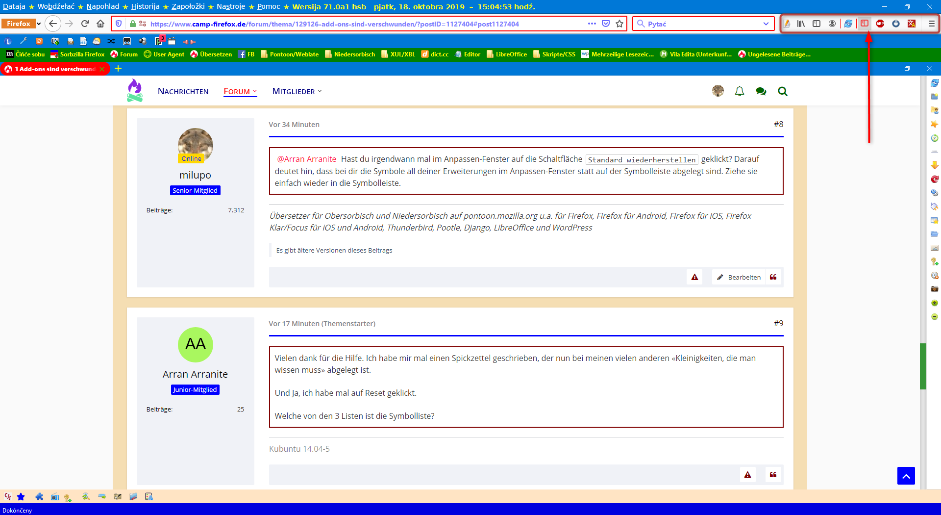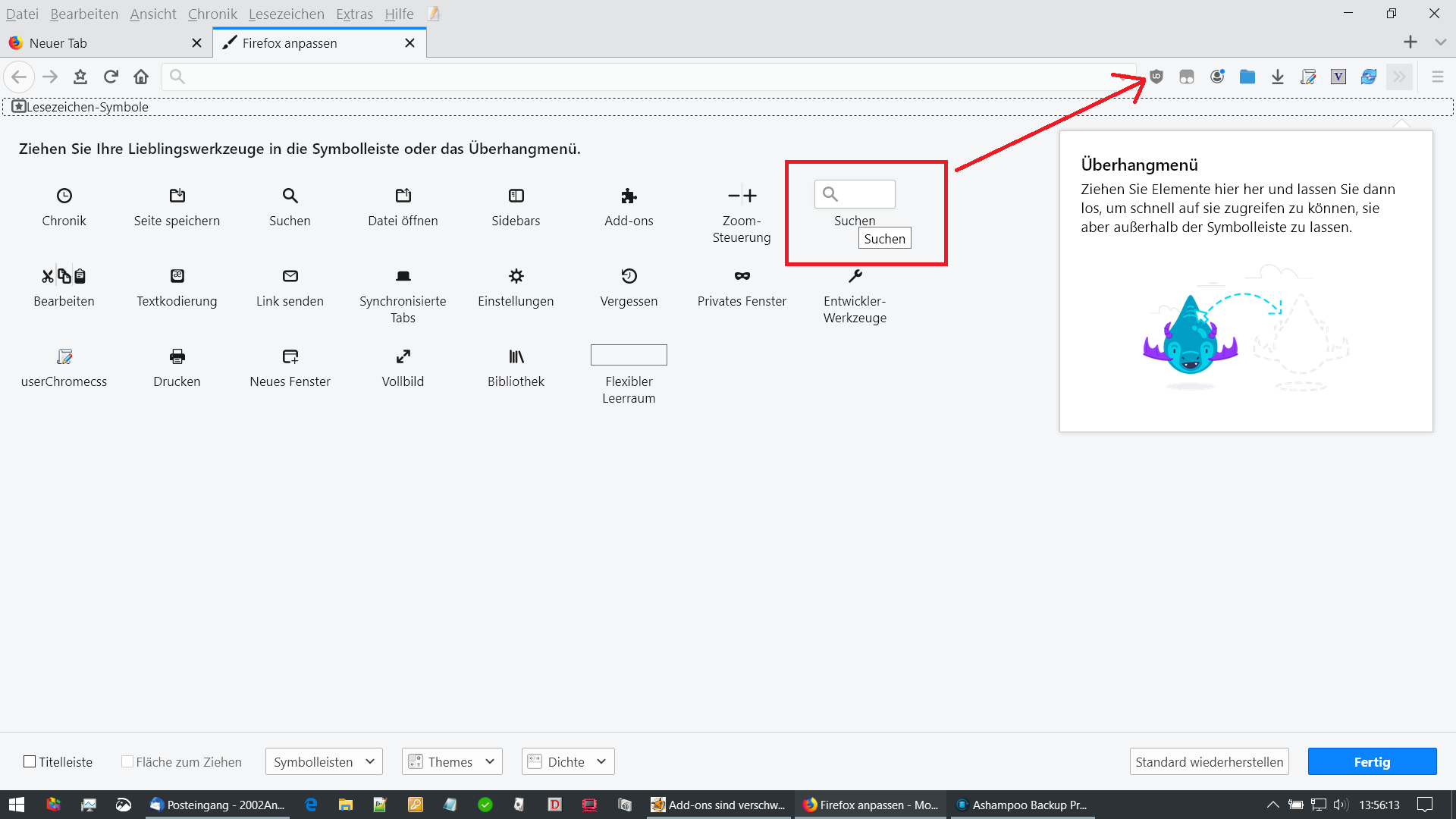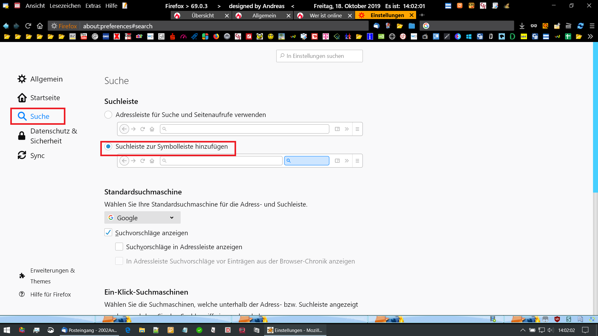 Seit einigen Tagen sind bei mir 2 wesentliche Addons hinter den Hamburgern verschwunden. Es handelt sich um den« Download helper» und das Feld wo man die diversen Suchmaschinen für eine Suche auswählen kann.