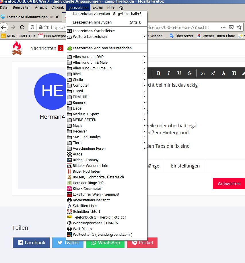 udn vor allem wie kann man die Lesezeichen und Menüleiste und den sChrifztug bei Lesezeichen Datei bearbeiten usw. verkleinern