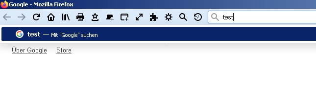 Um es vielleicht etwas verständlicher zu machen, ich gebe z.B. in die Adressleiste "G Test" ein. Daraufhin öffnet sich darunter eine dunkelblaue Leiste mit div. Suchmaschinensymbolen. Diese Leiste möchte ich gerne entfernen.