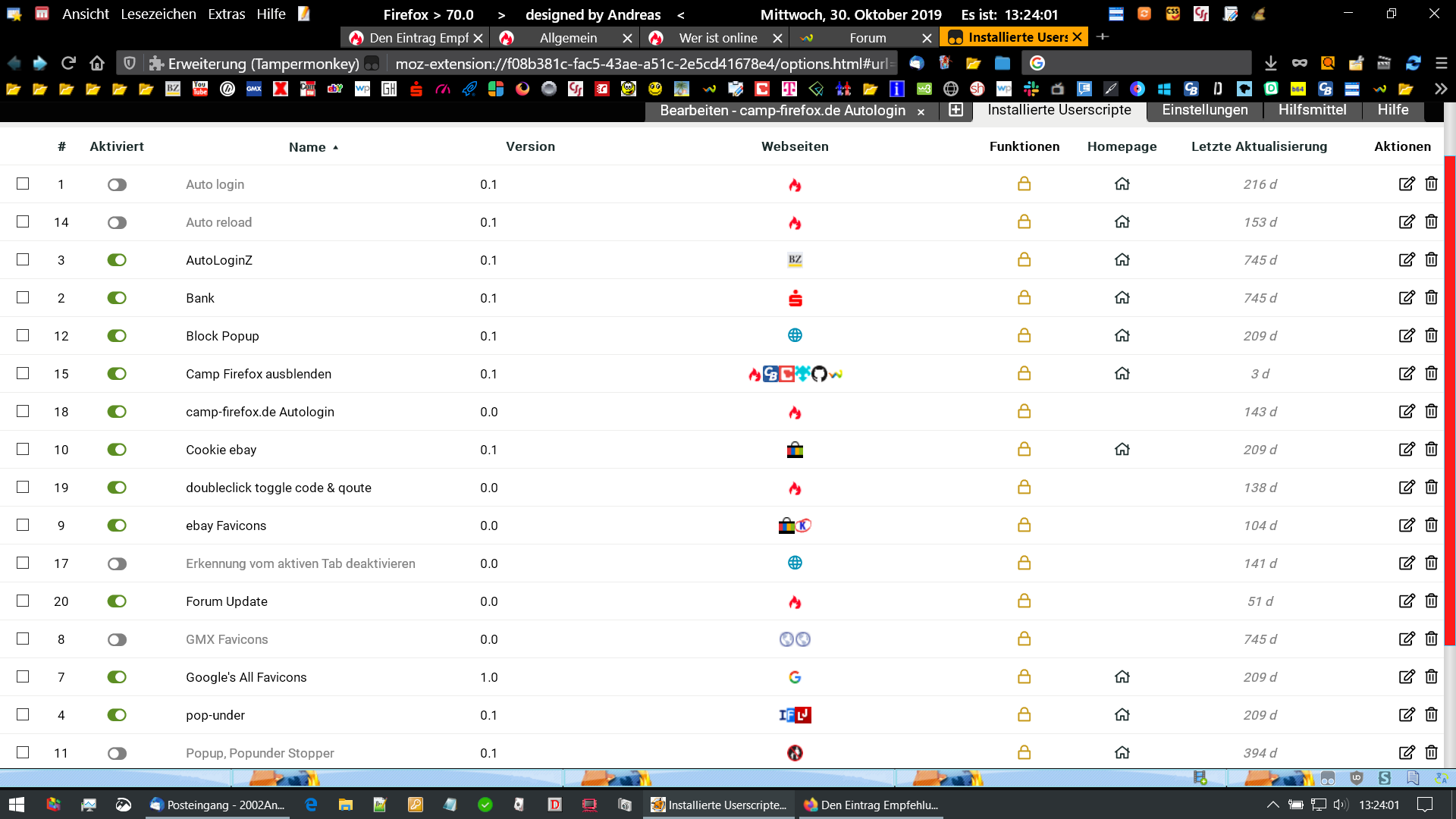 Noch kurz zu Tampermonkey. Wenn Änderungen an der Oberfläche nur noch über die userChrome.css erlaubt sind, dann habe ich Deine Aussage falsch aufgefasst. Denn ich ging erfreut davon aus, dass man Tampermonkey (auch) für Änderungen an der Oberfläche verwenden kann. Das Stichwort war Scripte, die nicht per uc.js eingebunden werden (können).
