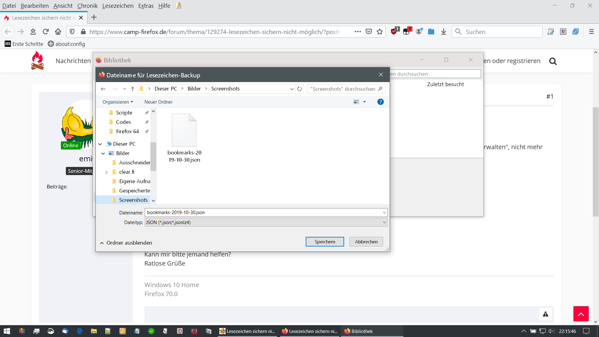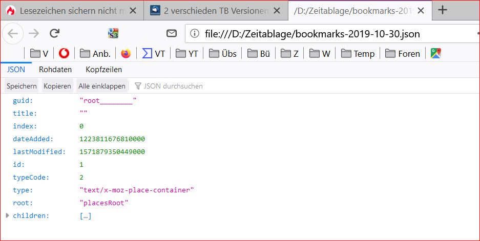 Neuerdings lassen sich meine Lesezeichen, die vorhanden sind und die ich benutzen kann, auch unter "Lesezeichen verwalten", nicht mehr sichern.