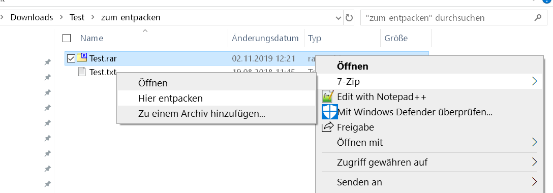 Und ich bin mir nicht sicher, ob ich mit dem Entpacker 7-Zip RAR-Dateien entpacken kann. Packen kann ich damit keine Dateien mit Endung RAR.