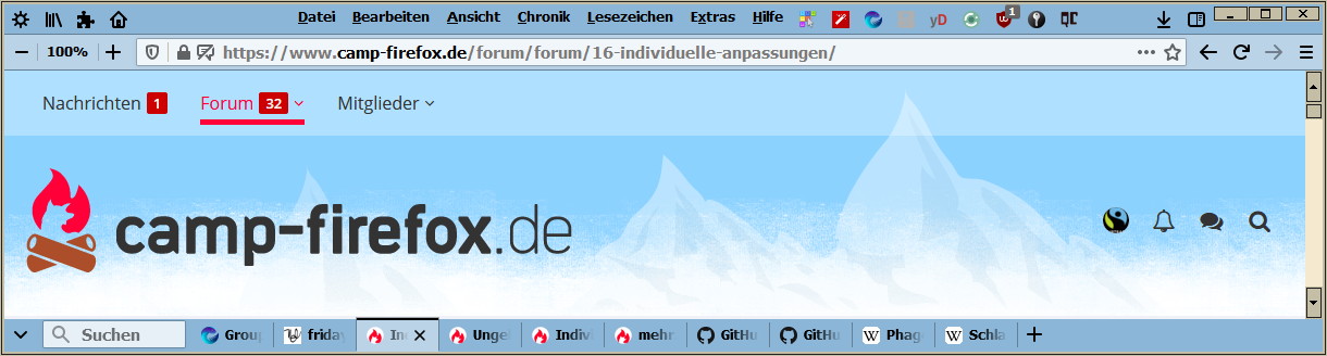 11. Dezember 2019 um 02:47 Hat den Titel des Themas von „Tableiste & Adressleiste komplett nach unten verlegen? (FF 71+)“ zu „FAQ: Menü-, Adress- und Tableiste unterhalb des Fensters anzeigen? (FF 71+)“ geändert. -