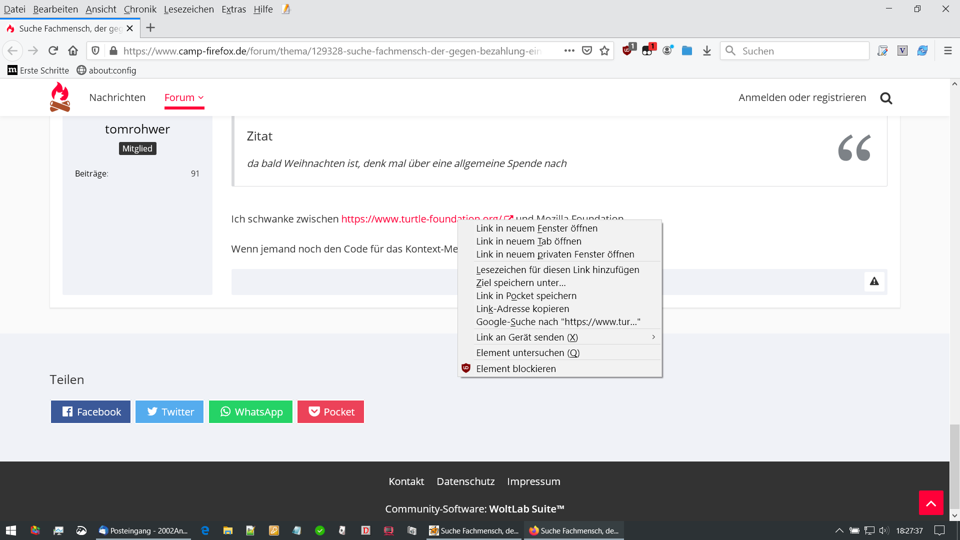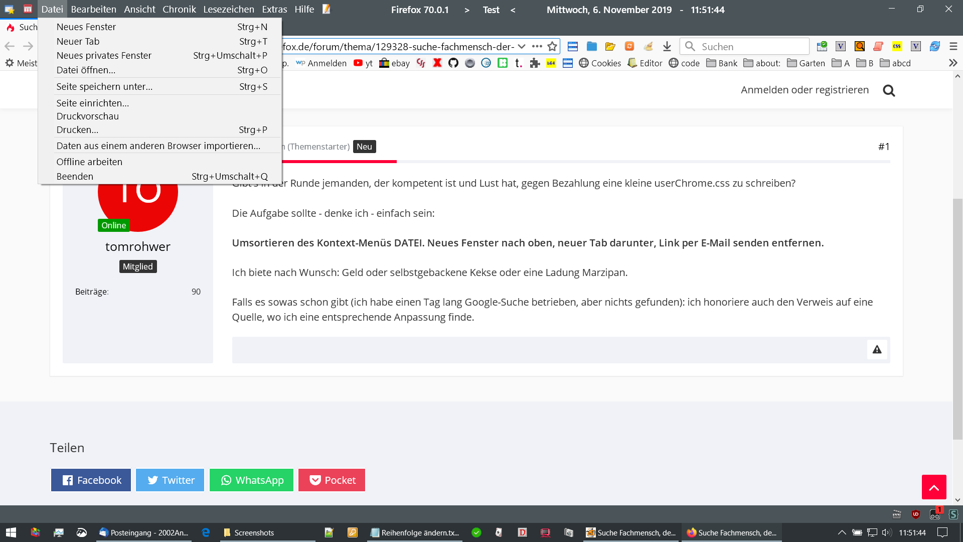 Gibt's in der Runde jemanden, der kompetent ist und Lust hat, gegen Bezahlung eine kleine userChrome.css zu schreiben?