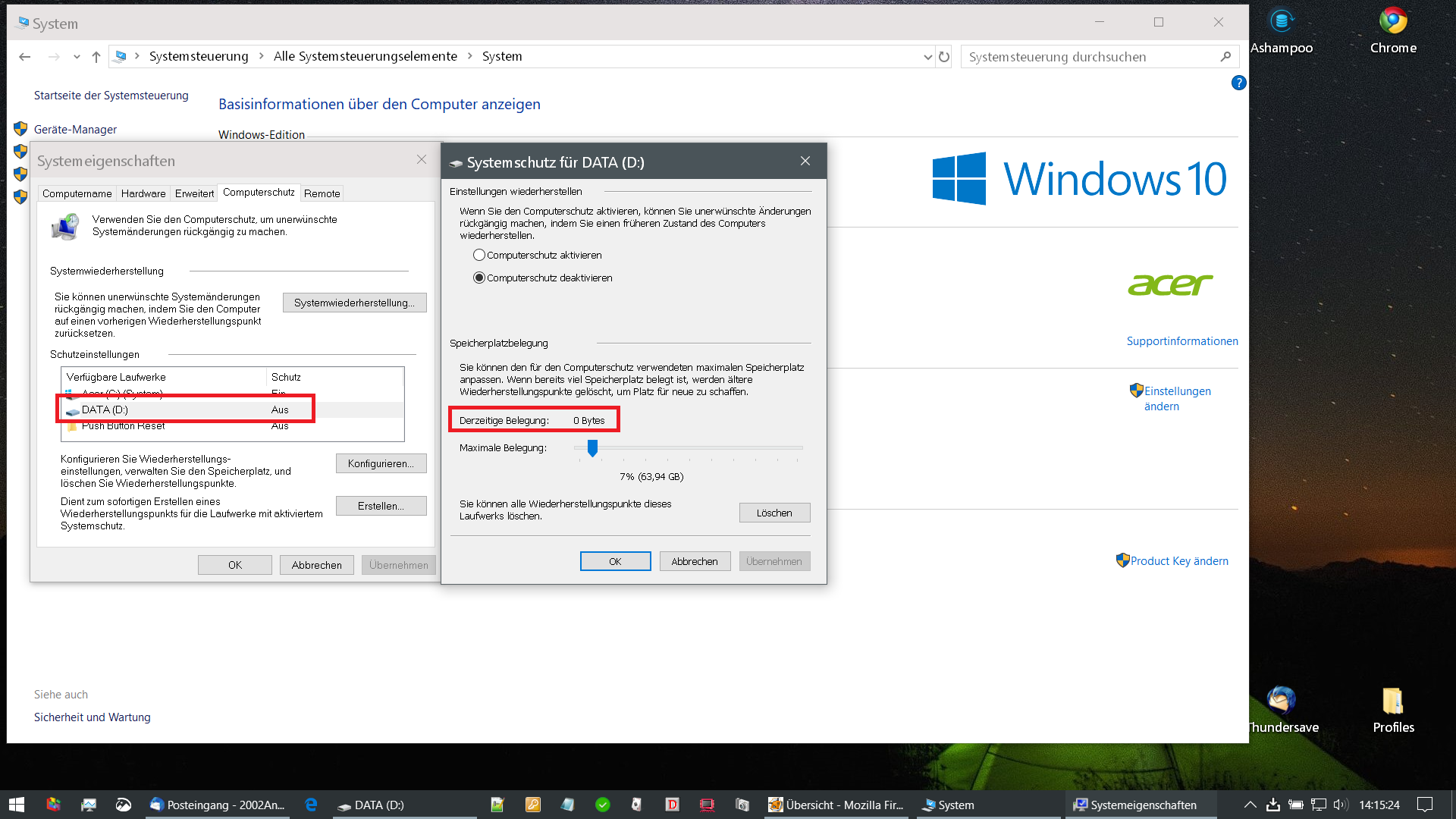 Du kannst einstellen, für welche Laufwerke/Partitionen Wiederherstellungspunkte erstellt werden. Für D: kann das vorteilhaft sein, wenn du keine externe Sicherung deiner Daten hast. Wenn das Laufwerk D: ein physisch getrenntes Laufwerk ist, machen Wiederherstellungspunkte dafür aus meiner Sicht wenig Sinn. Eine externe Datensicherung ist allerdings grundsätzlich immer wichtig.