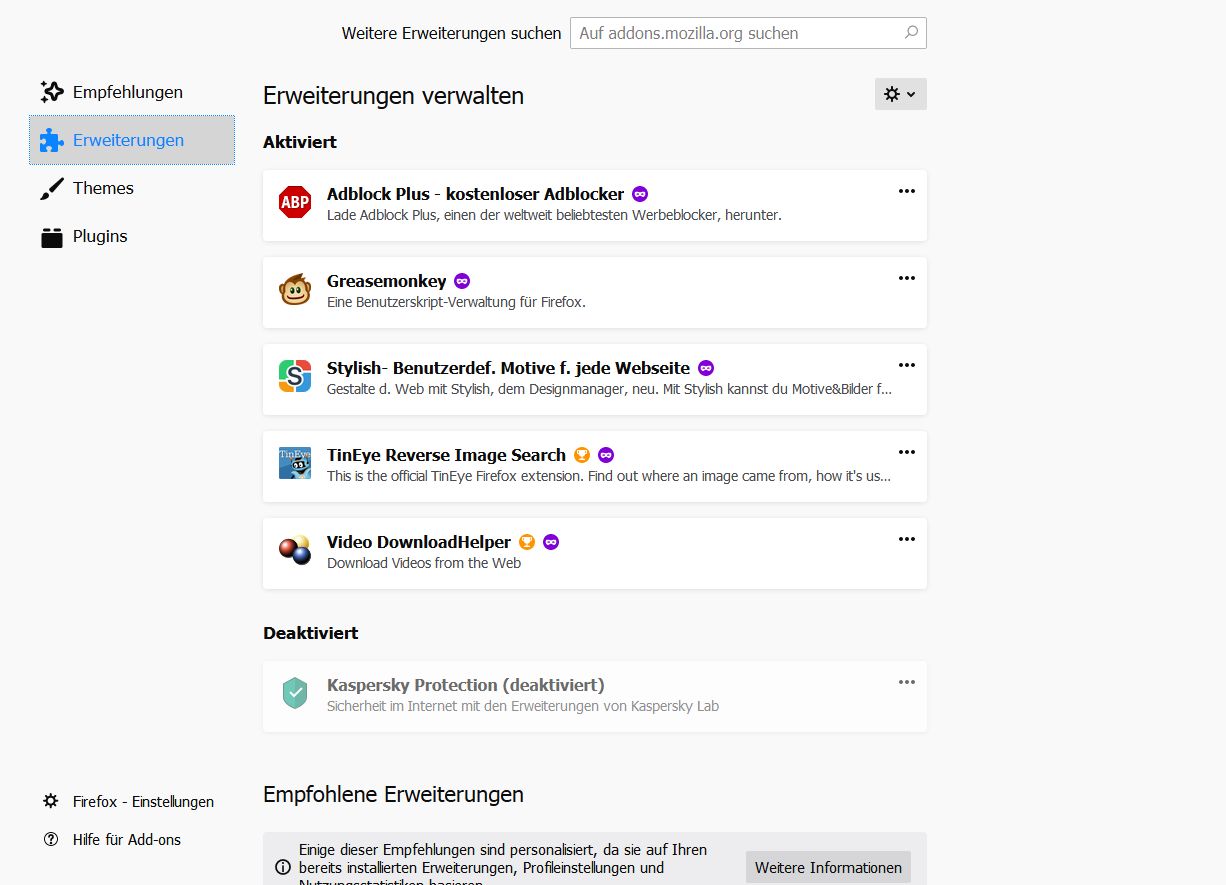 Deaktiviere mal den Kaspersky Addon, hast du das auch auf dem anderen Rechner drauf?