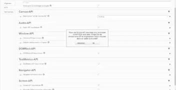 Zudem erscheint, wenn man erstmalig bei "Window-API beschützen" den Haken setzen will zusätzlich noch einen Hinweis