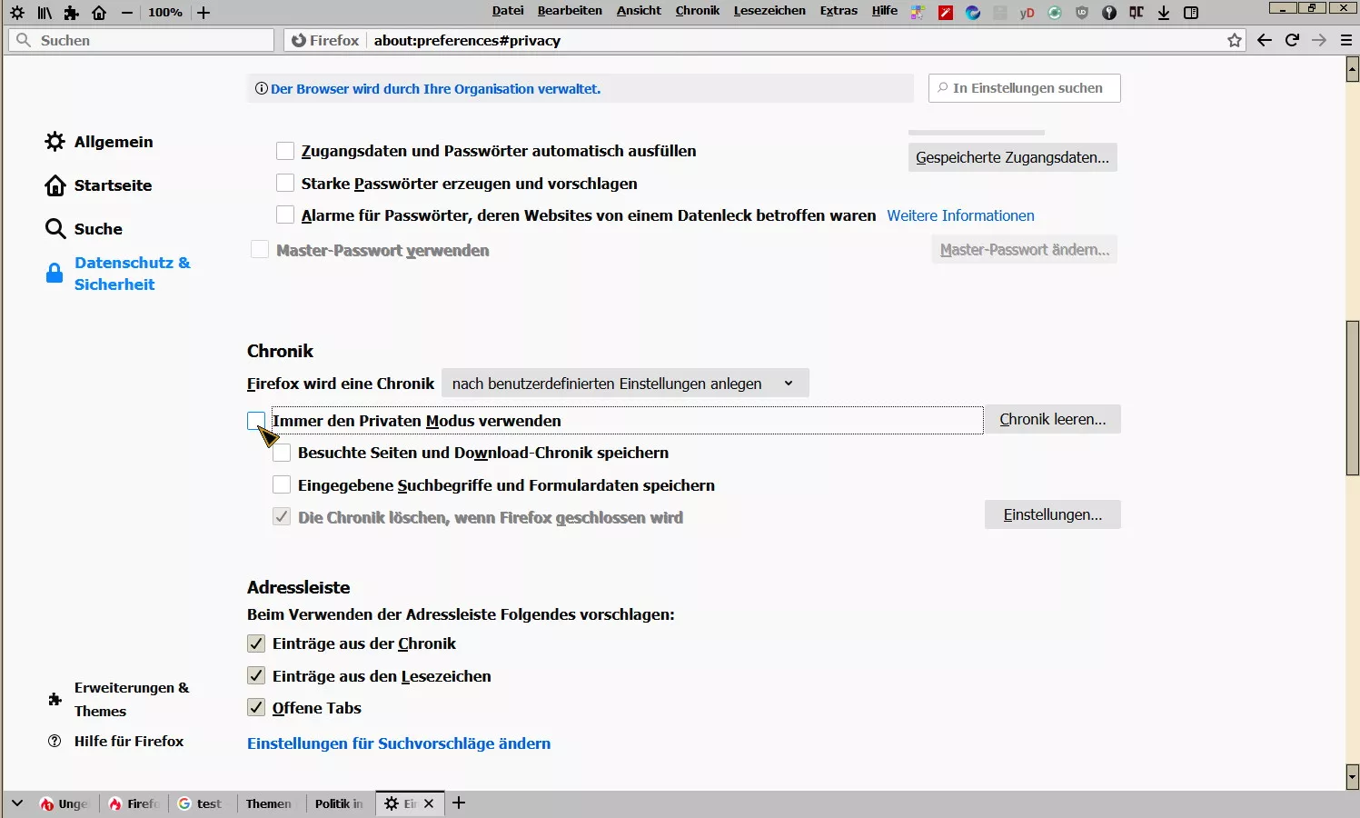 Den Rechner nutze ich üblicherweise allein und verzichte deshalb auf den privaten Modus.