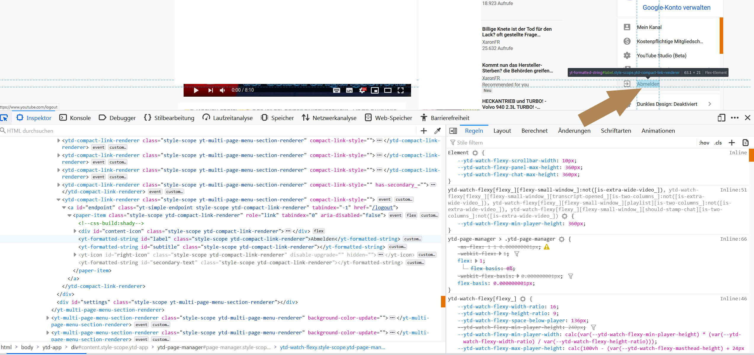 auf Youtube Abmelden farblich ?