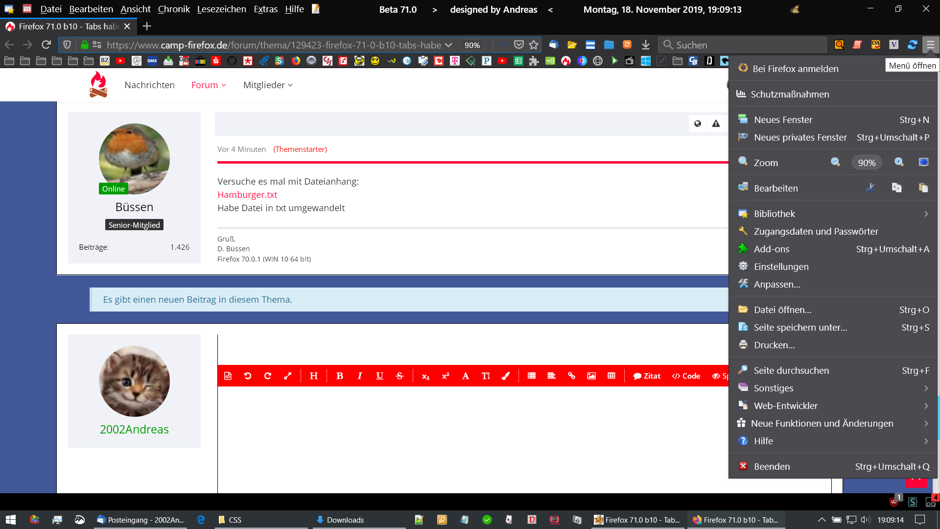nachdem ichgestern das Update Firefox 71 Beta 9 auf b10 durchgeführt habe, bekam ich den gleichen Zustand wie seinerzeit mit der Nightly Version: