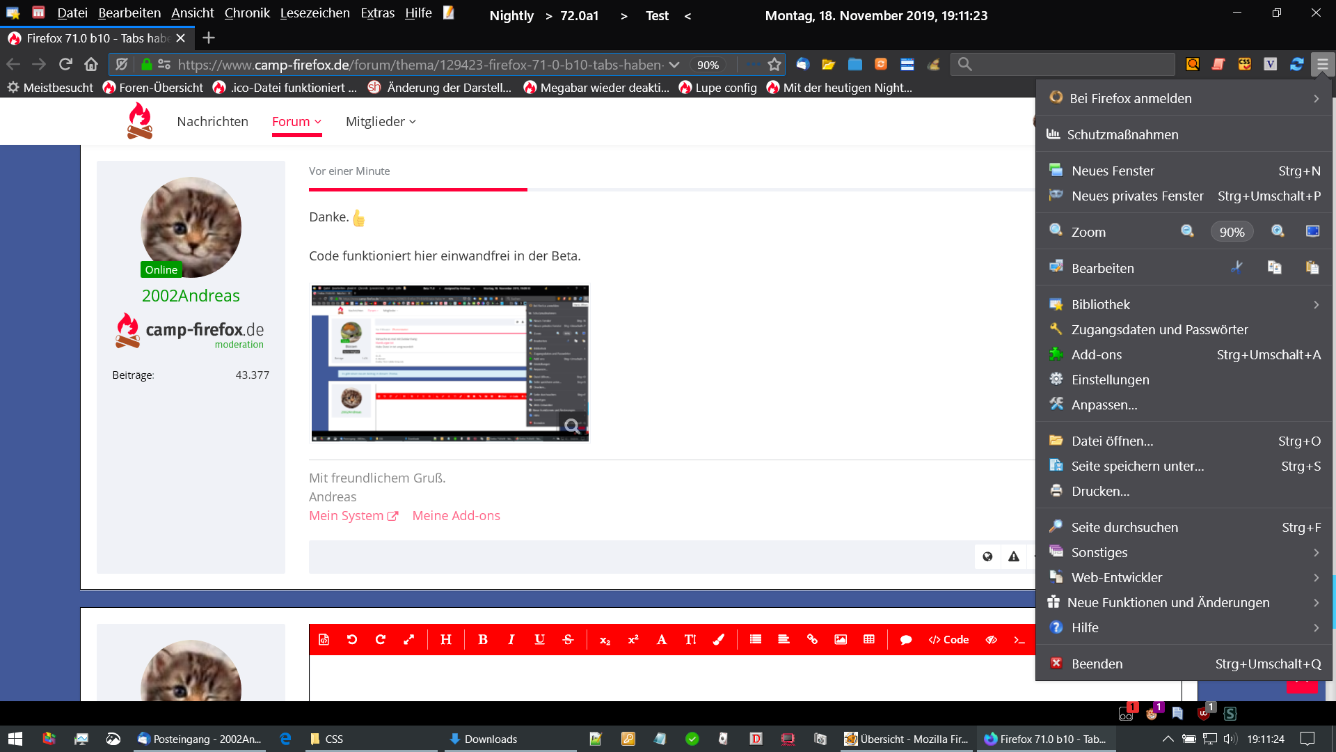 Firefox Nightly 71.0a1 vom 07.10. Leerfläche unter Tableiste? (s.a. #17)