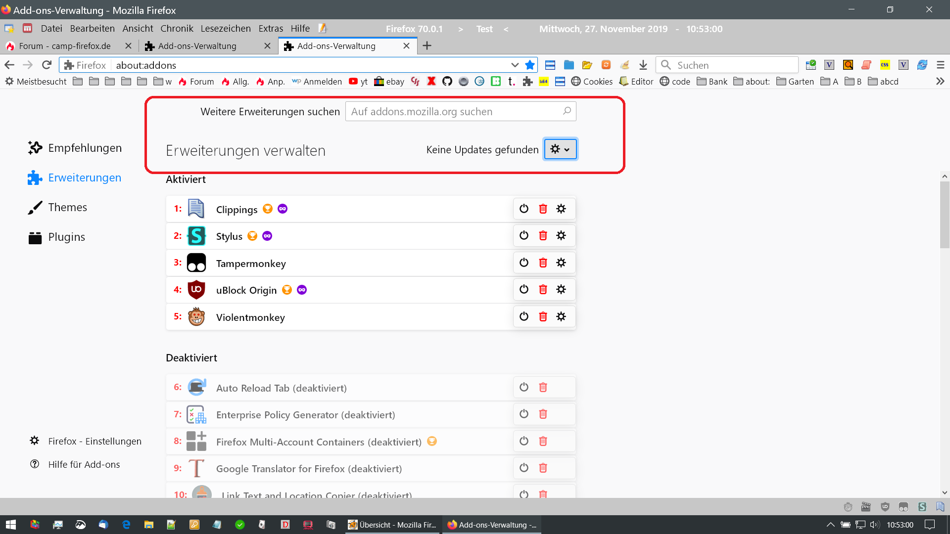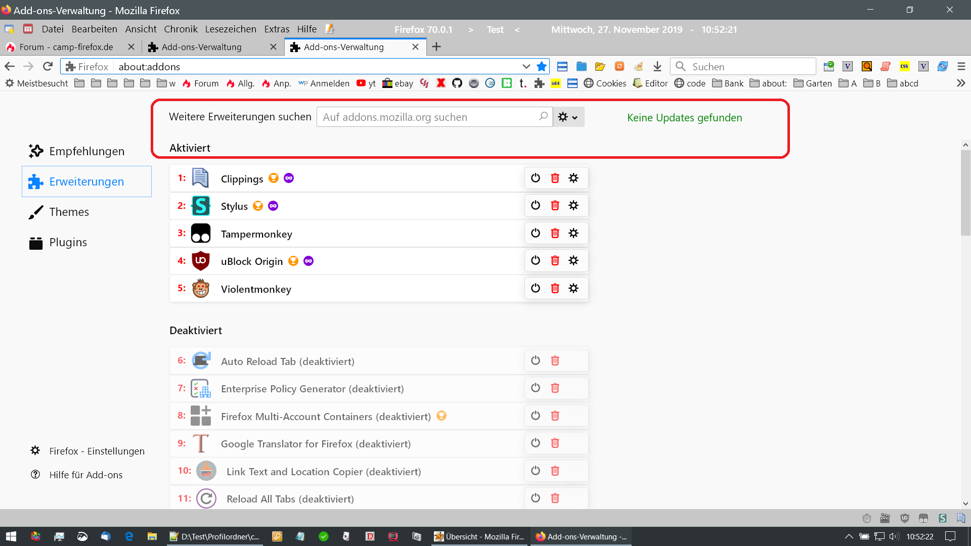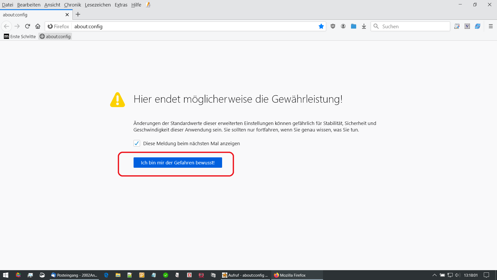 nach den ganzen Anpassungen vom Addons-Paneel wollte ich eine Einstellung in about:config vornehmen.