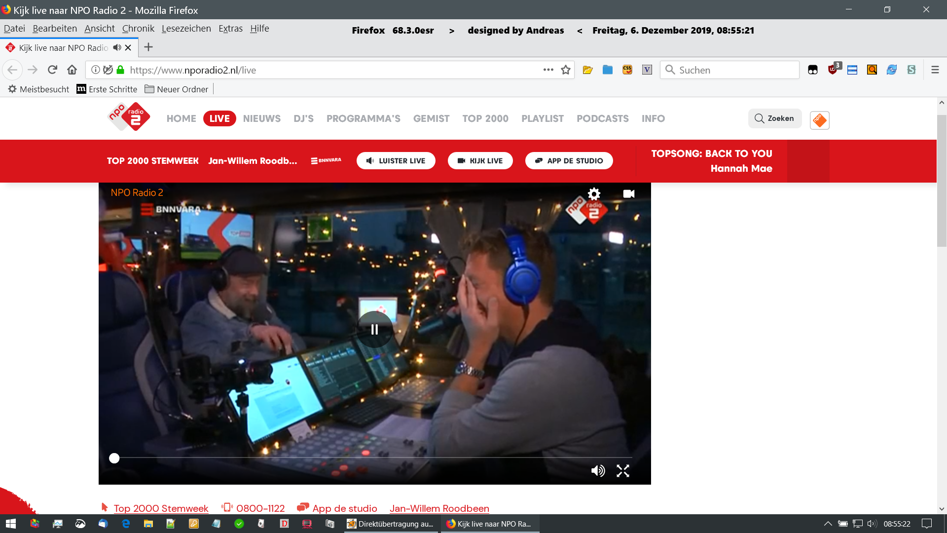 Im Vorfeld zu den TOP 2000 ist mir jetzt aufgefallen, dass die Direktübertragung aus dem Studio bei mir nicht funktioniert: