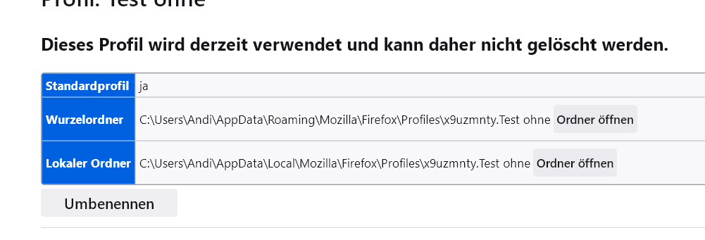 Dieses Profil wird derzeit verwendet und kann daher nicht gelöscht werden.