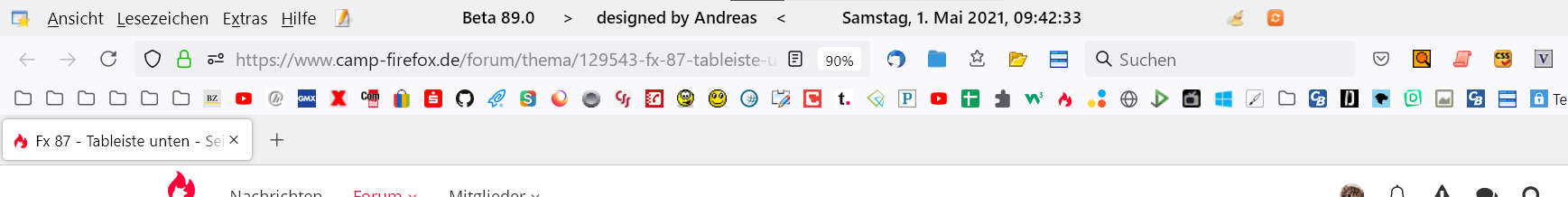 die Tabs sind über meiner "Lesezeichen Symbolleiste" gelagert