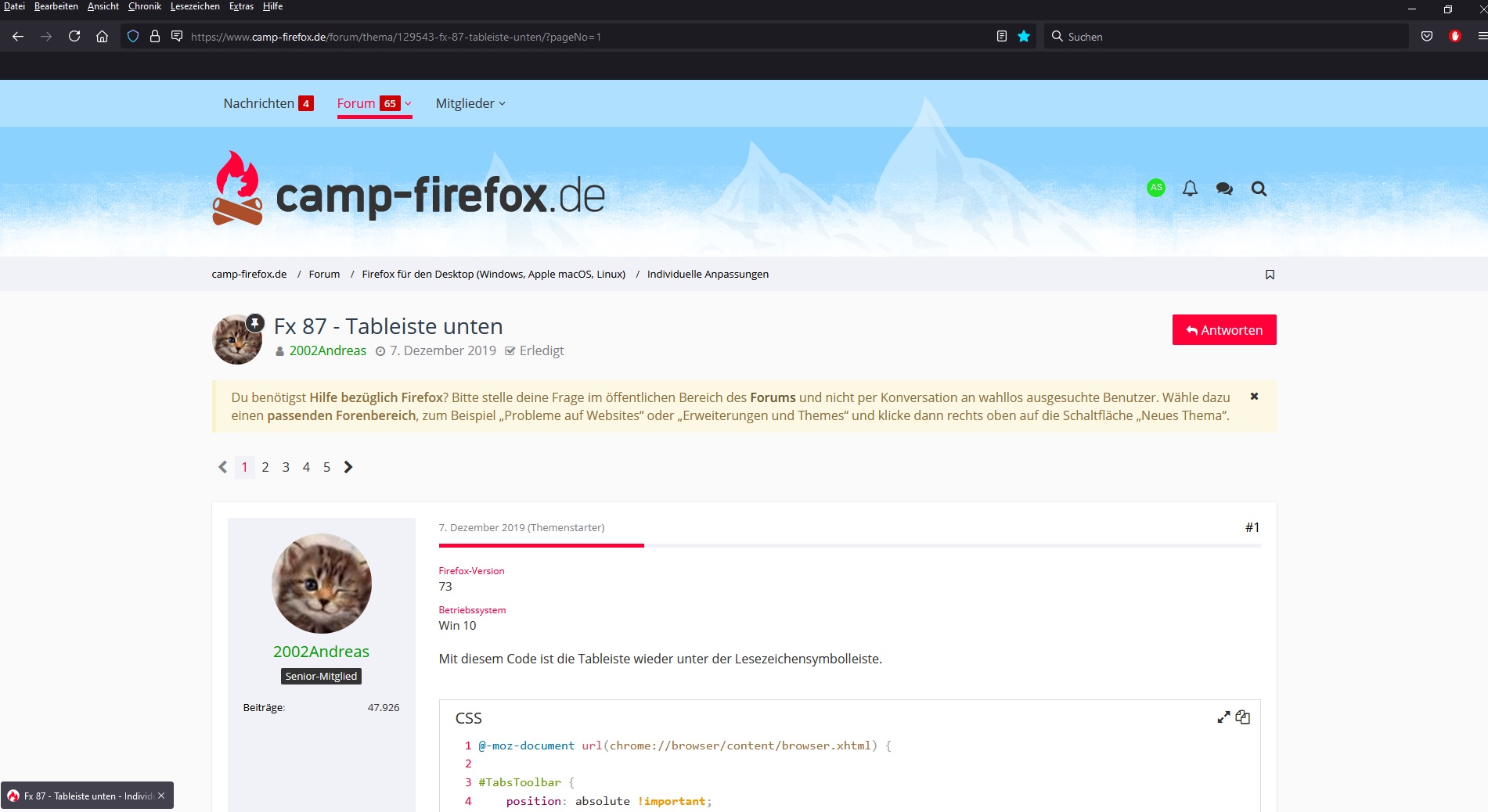 Fx 133 > Tableiste unten per CSS-Code, oder per Skript.