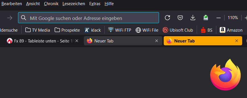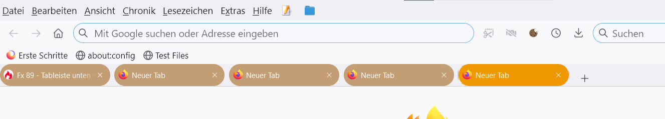 Mit euren Codes sind meine Tabs nun wieder unten. Die Lesezeichen-Symbolleiste ist wieder Mehrzeilig.