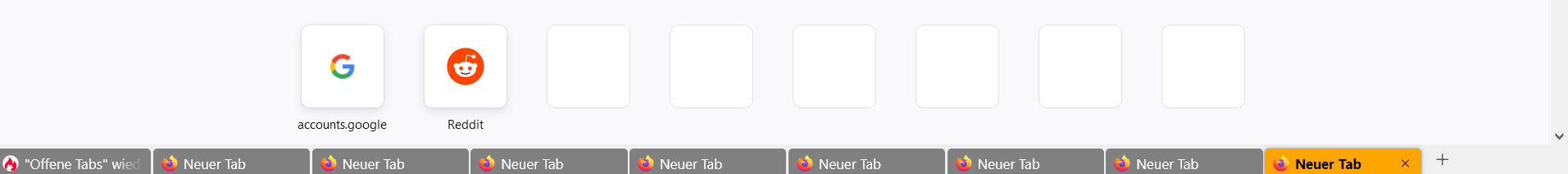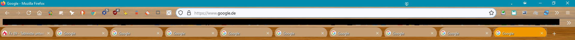 Der Abstand unter der Tableiste kommt nur, wenn ich alle Tabs einmal geschlossen habe, bis auf den letzten und dann einen neuen Tab rechts daneben aufmache. Beim Start von Firefox ist noch alles okay, aber so bald ich das mache, dann kommt der Abstand da unten hinzu.