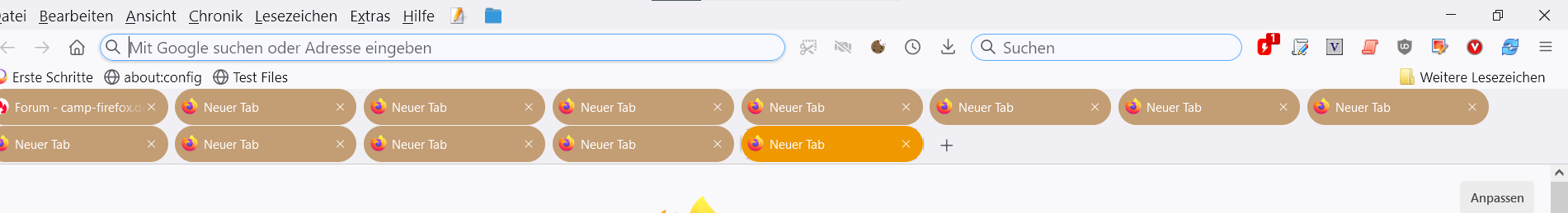 Ich hatte mir das eigentlich so eingerichtet, das ich auf einer Zeile bis zu 10 Tabs habe und dann geht eine neue Zeile darunter weiter mit wieder je 10 Tabs und das ist gut so für mich (zu deiner Antwort ob ich mehrzeilige Tabs möchte).