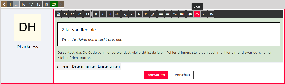 Du sagtest, das Du Code von hier verwendest, vielleicht ist da ja ein Fehler drinnen, stelle den doch mal hier ein und zwar durch einen Klick auf den </> Button.