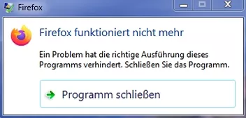 "Firefox funktioniert nicht mehr. Ein Problem hat die Ausführung von Firefox verhindert."