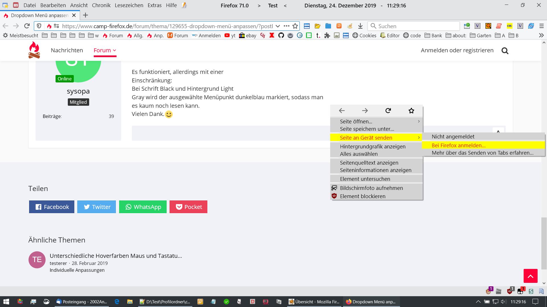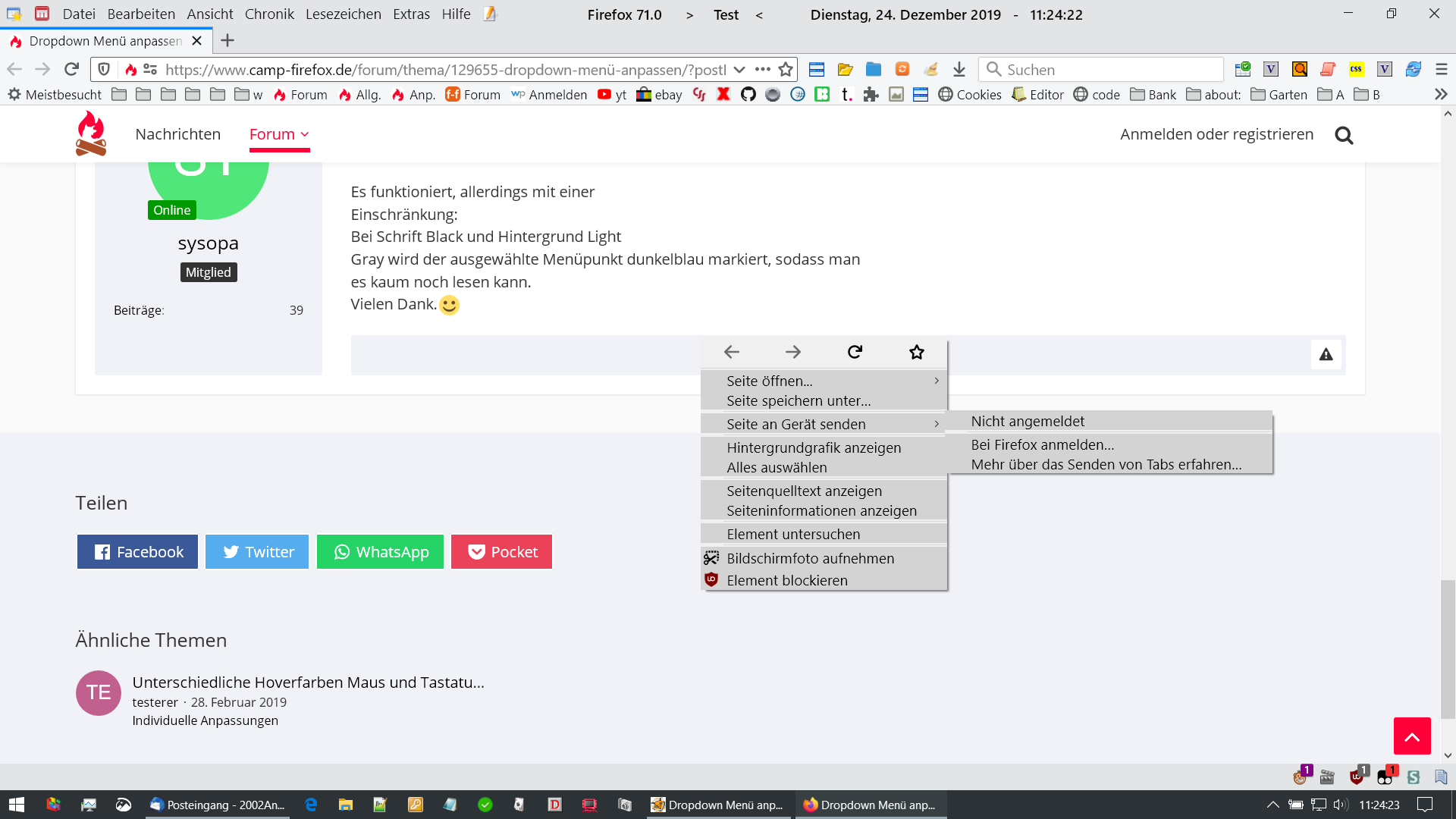 An sich in allen (Datei, Bearbeiten etc ..), aber hauptsächlich im Lesezeichen Menü
