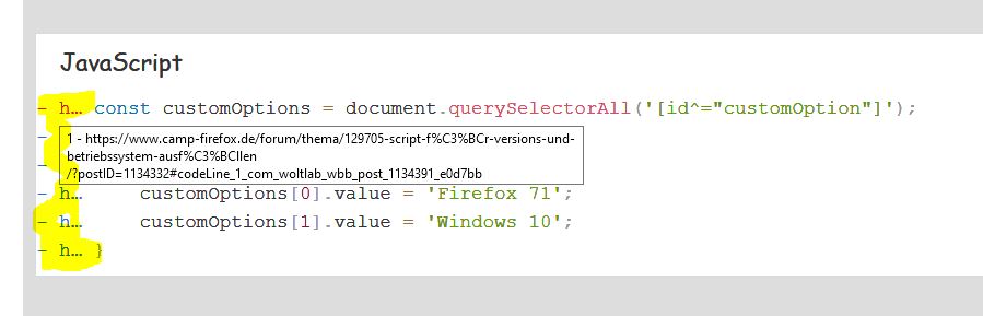 Ja, aber das Problem tritt ohne das Skript nicht auf, also muss es dafür mitverantwortlich sein. Ich könnte mir vorstellen, dass hier beim Zusammenspiel von Forumsoftware und Skript ein Konflikt entsteht. Insofern ist es schon gut zu wissen, was das Skript macht und wie es aussieht. Ich werde das Skript mal bei mir aktivieren, mal sehen, was passiert.