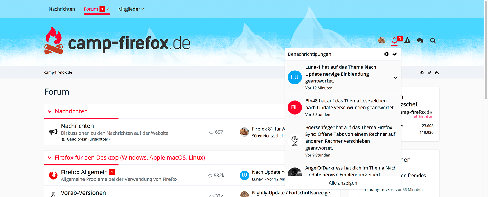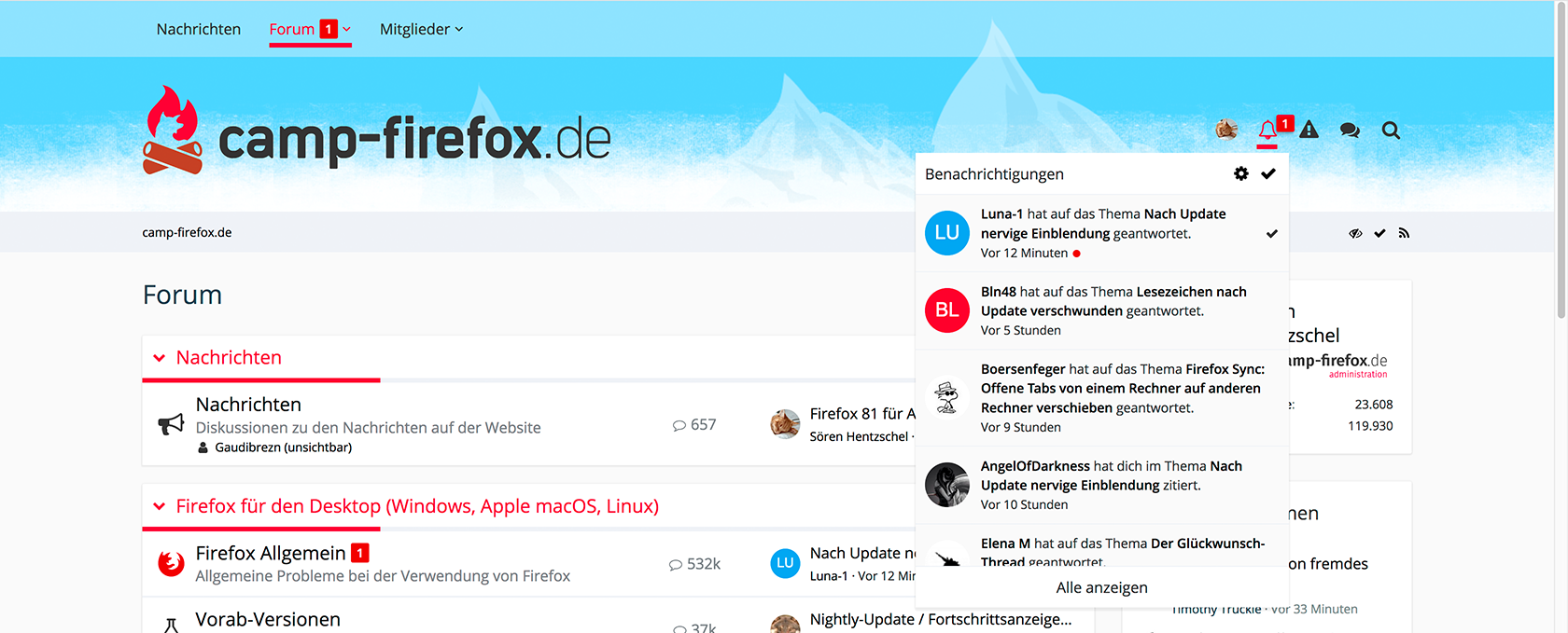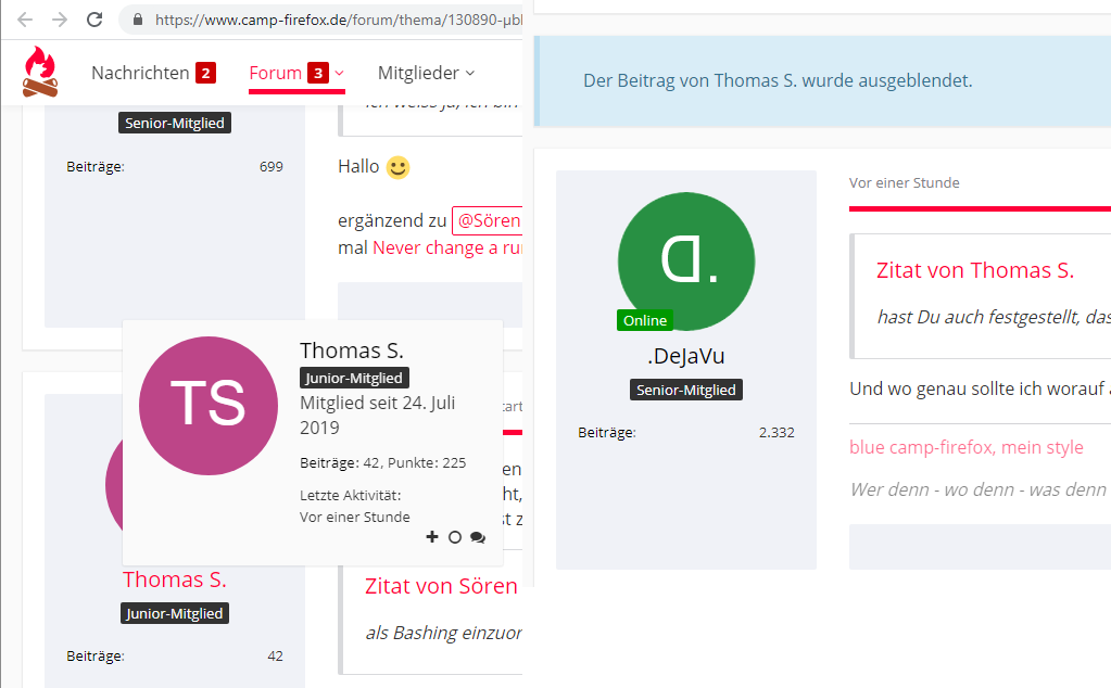 Anm. Andere Mitglieder, die auch auf der Liste stehen, werden auch "in blau" zusammengeklappt, die sind aber nicht gleichzeitig Themenstarter.