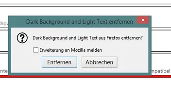 Bei Deinstallation von Erweiterungen/Themes die Abfrage "Erweiterung an Mozilla melden" entfernen