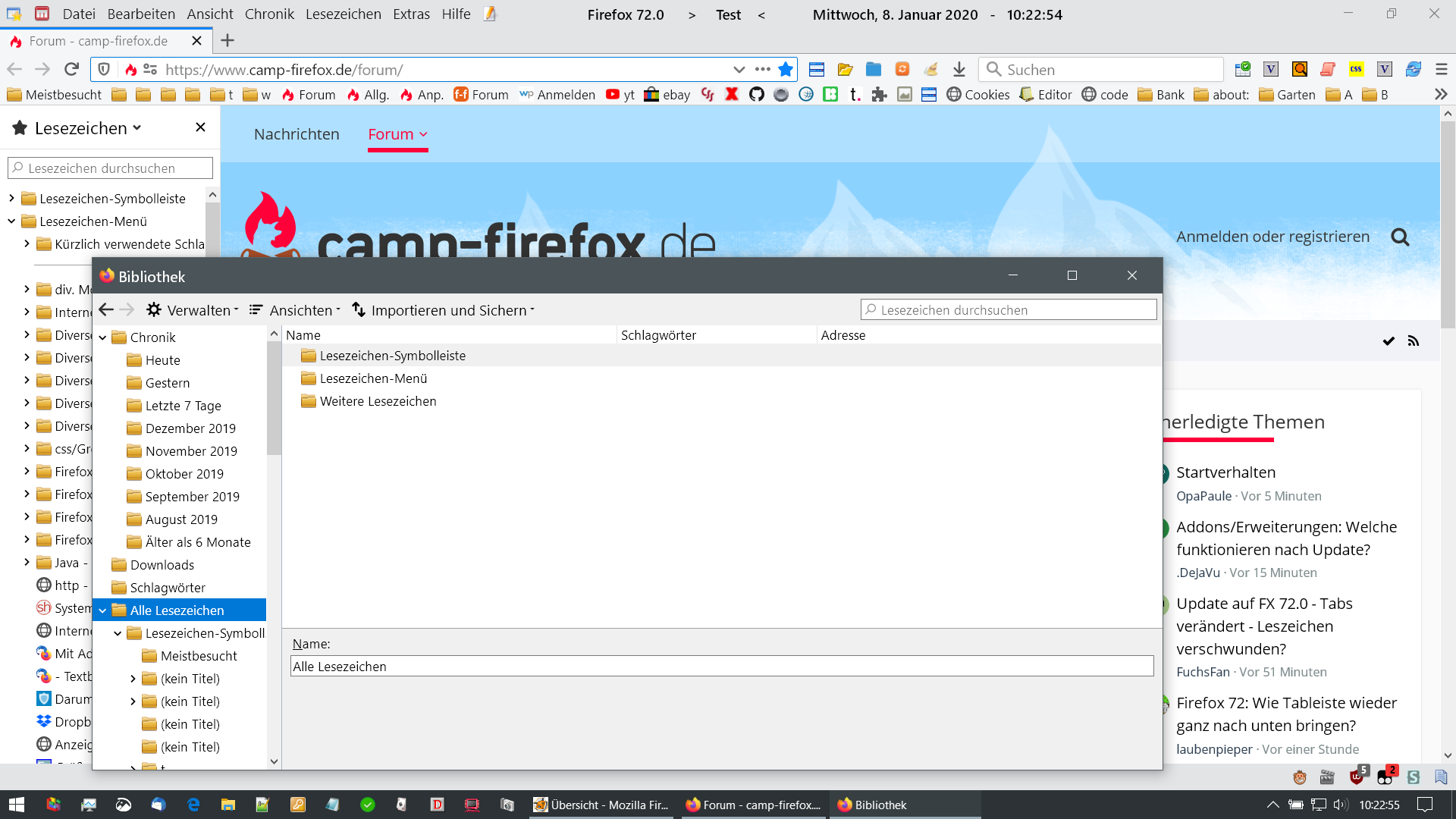 Überall gelbe Ordner - bis auf CHRONIK, DOWNLOADS, SCHLAGWÖRTER, ALLE LESEZEICHEN, aber