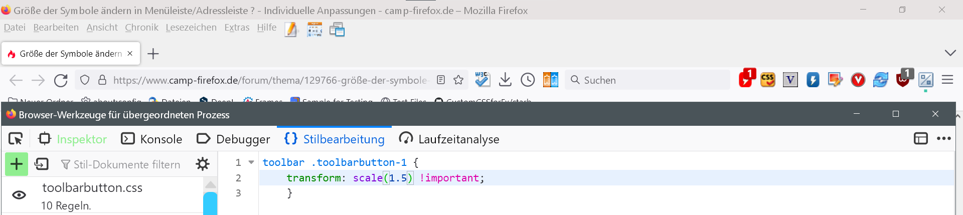 Ich nutze Firefox 71 und möchte die Symbole in der Menüleiste und Adressleiste vergrößern.