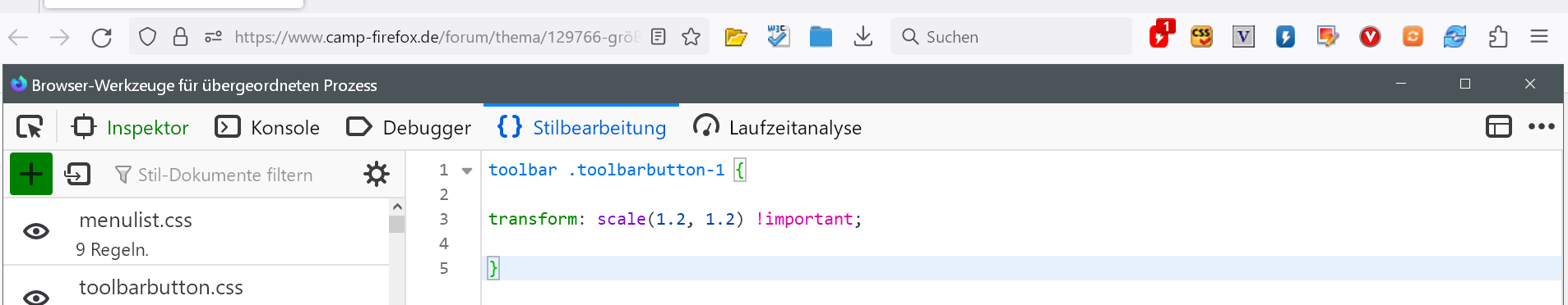 Größe der Symbole ändern in Menüleiste/Adressleiste ?