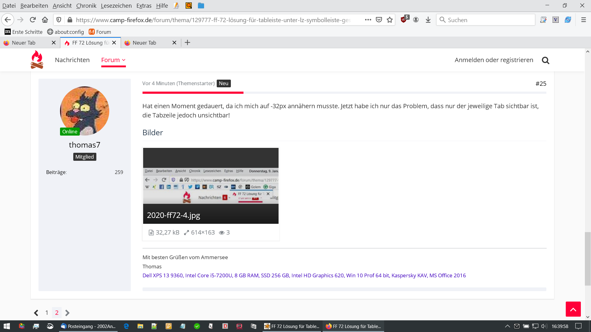 2002Andreas Danke. Es dauerte etwas bis ich kapiert habe, das es der css-Zweizeiler "#TabsToolbar" ist, danke!